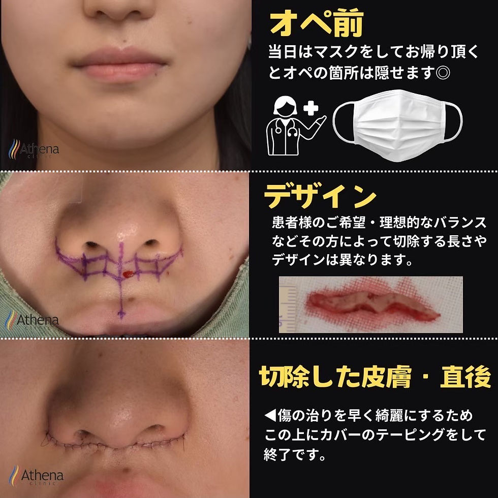 また、傷跡は鼻の下のラインに沿ってできるため、時間の経過とともに